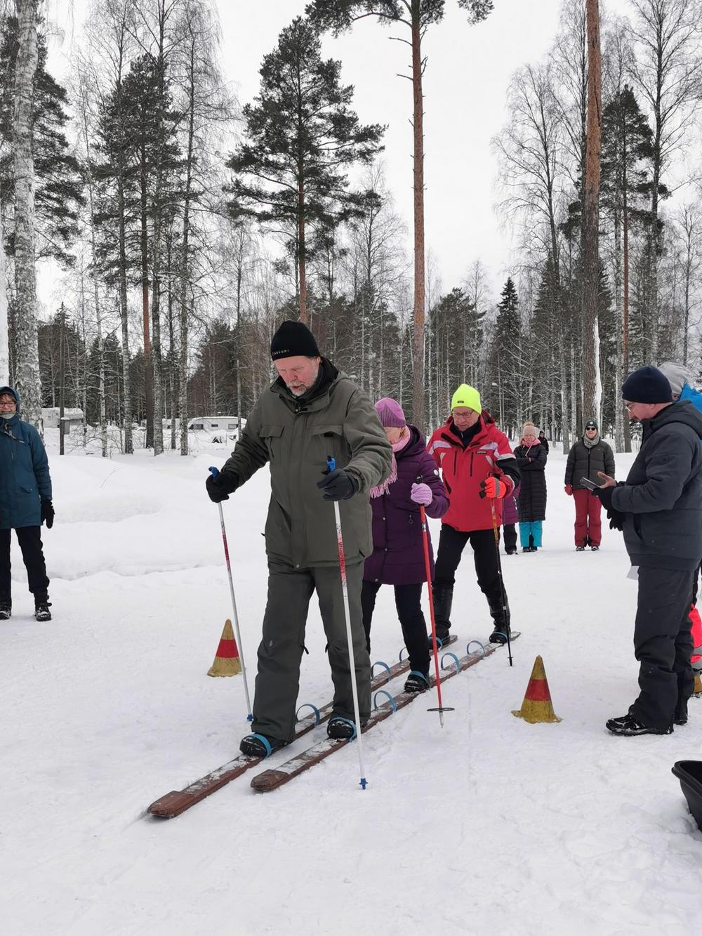 Lauantai aamu valkeni pilvisenä, mutta sääennuste lupasi auringon paisteen alkavan ja niin se alkoikin. Saimme viettää perinteikkään laskiaisriehan loistavassa säässä ja runsaahkon osallistuja määrän kera. Edellisestä riehasta oli kulunut jo aikaa nimeltä mainitsemattoman pöpön johdosta ja kisoja odotettiin kuin suurta urheilujuhlaa. Osallistujia oli mukavasti nuorisosta varttuneeseen väkeen ja juuri sopivasti neljään neljän hengen ryhmään. Joukkueet olivat, voittaja joukkuetta lukuun ottamatta, sekajoukkueita niin iän kuin oletetun sukupuolen suhteen. Lajeina tämän vuoden riehassa olivat frisbeegolf, hiihto ja sokkopotkuri. Frisbeegolfissa joukkueen jäsenet yrittivät saada mahdollisimman paljon pisteitä koreista, joista toisesta sai kolme ja toisesta yhden pisteen. Joukkueet suoriutuivat lajista vaihtelevasti. Seuraavaksi kilpailijat asettuivat suksille, kaikki neljä yhtäaikaisesti ja hiihtivät silmukan mallisen lenkin, tässä lajissa mitattiin joukkueen yhteistyö kykyä ja kaikki joukkueet pääsivät ehjinä maaliin. Kolmantena lajina oli sokkopotkuri, ryhmät jakaantuivat kahdeksi kahden hengen tiimiksi. Toinen potkutteli sokkona ja kyytiläinen ohjeisti läpi radan, joka sisälsi pujottelua, tiukan kaarteen ja loppusuoran. Tässä lajissa oli selkeästi etua runsaista ajokilometreistä sekä oikean ja vasemman hahmottamisesta. Kun kaikki lajit oli suoritettu, olikin aika vetäytyä takkatuvan lämpöön ja höyryävän hernekeittokattilan ääreen. Moni kehui ja allekirjoittanutkaan ei ole niin maittavaa hernaria syönyt koskaan, on meillä vaan huippu keittäjä! Voittajajoukkue voitti jokaisen lajin ja oli riehan ylivoimainen voittaja lähes tuplapisteillä toiseksi sijoittuneeseen joukkueeseen.